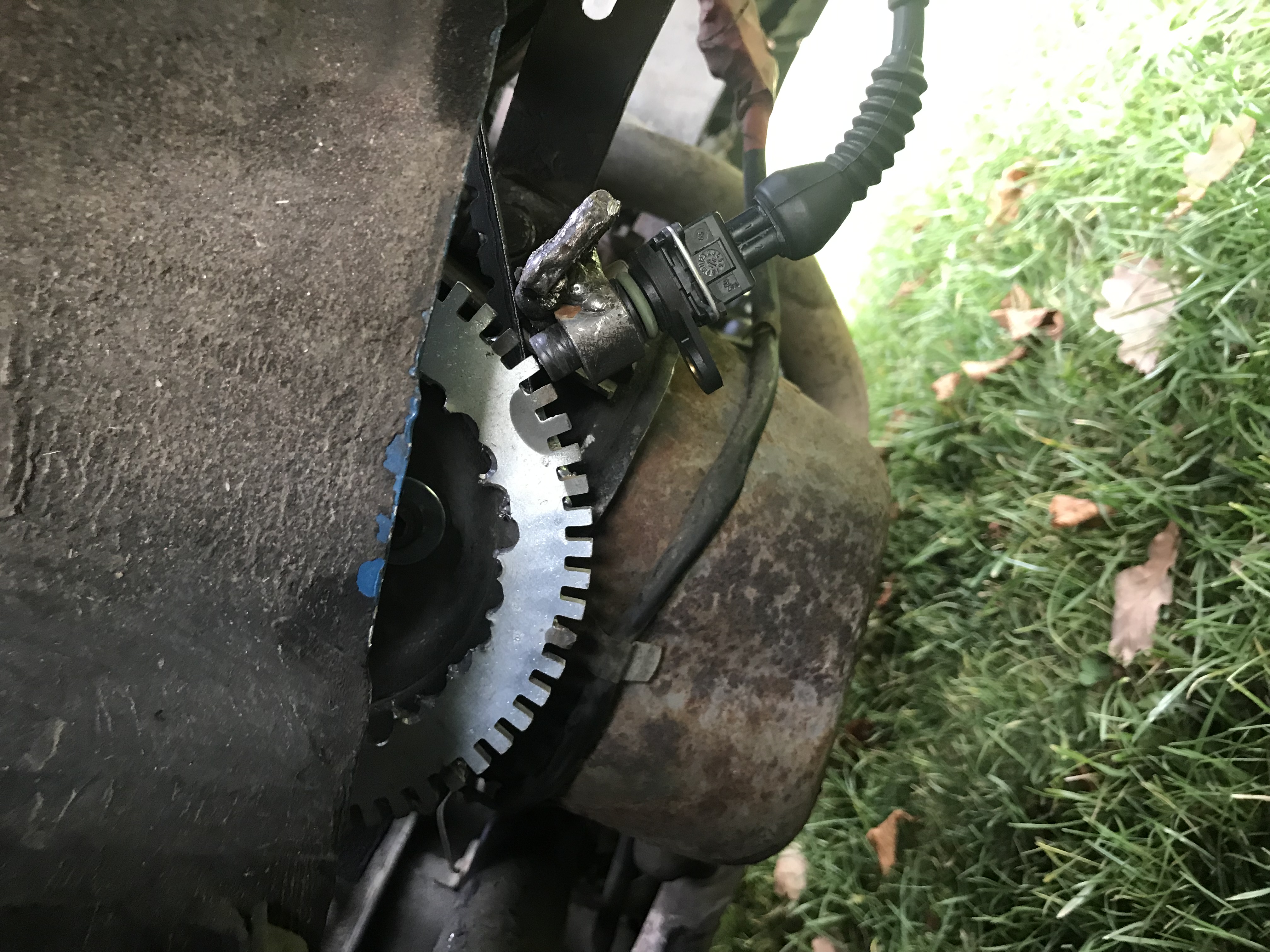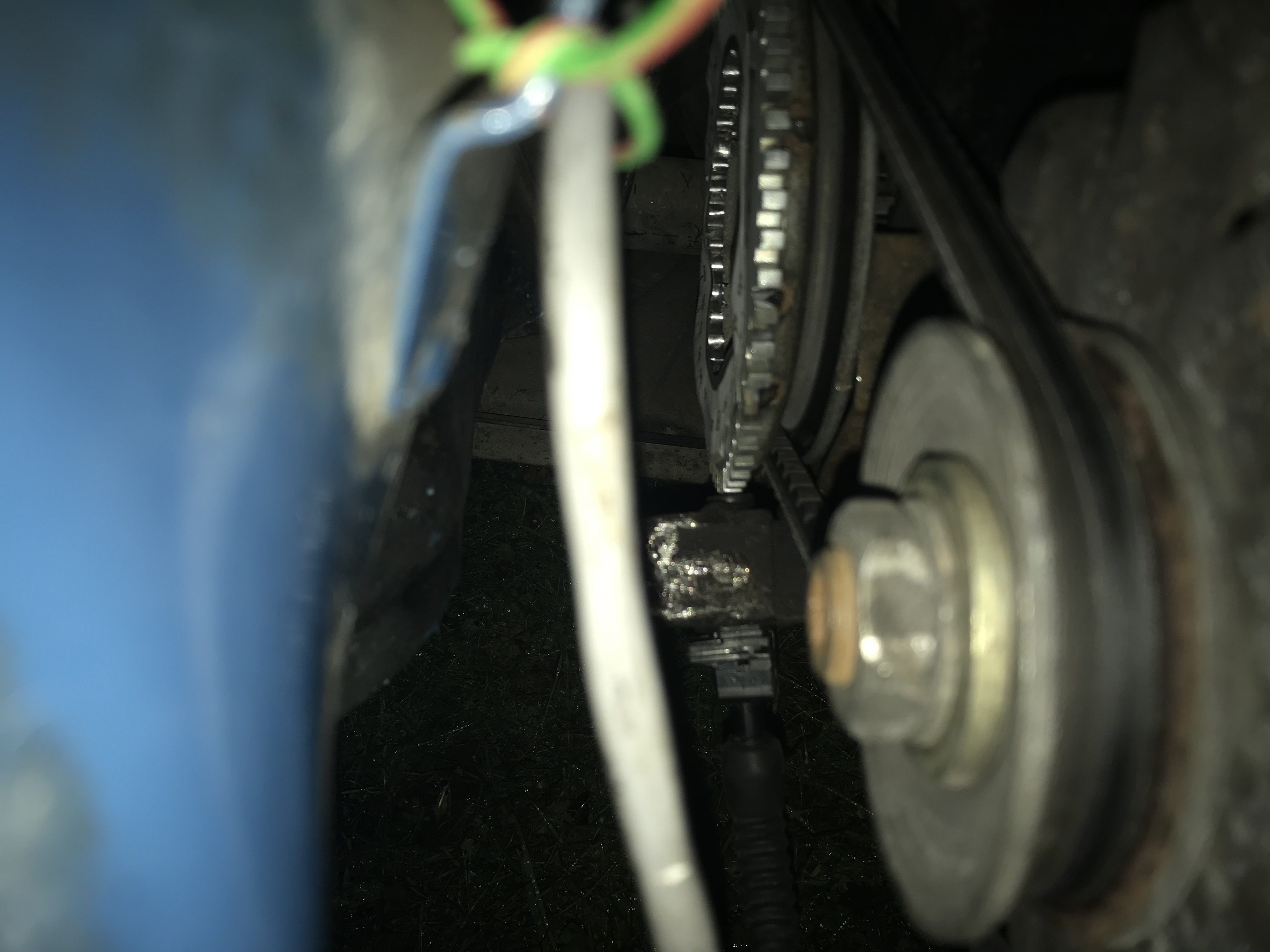Das Triggerrad ist jetzt an die Riemenscheibe gepunktet, der Halter ist neu ausgerichtet und da der VR-Sensor zwischenzeitlich über den Jordan ging hielt ein neuer Sensor von Hella Einzug.