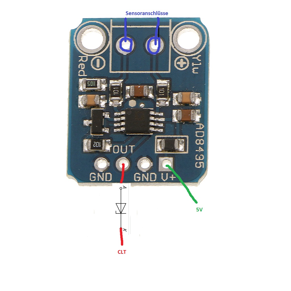 2. Thermosensor inkl. Verstärkerplatine wie in meiner Skizze beschalten