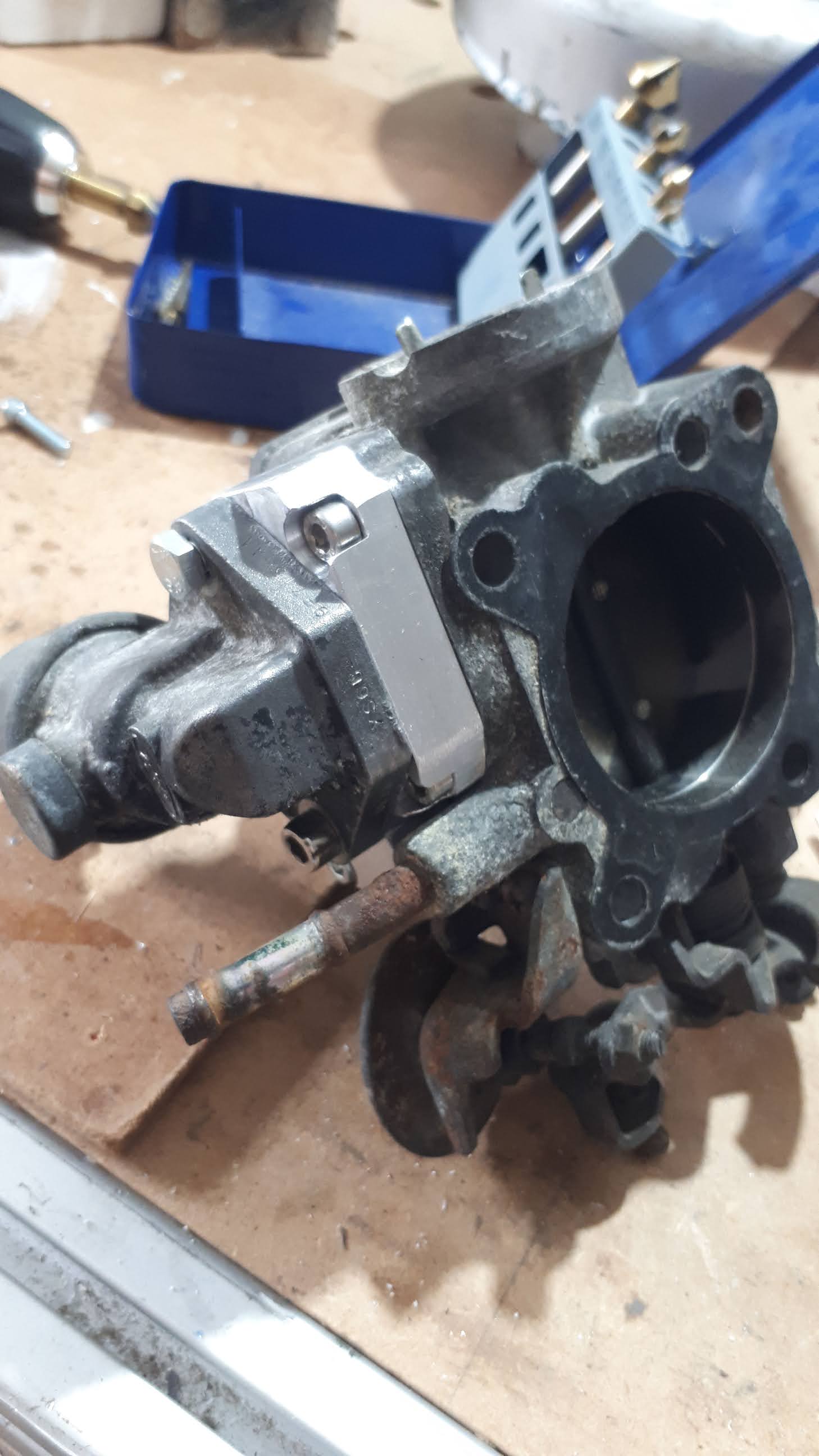 Wird also Zeit, das Ding rauszuwerfen und gegen etwas besser regelbares zu ersetzen. Ein bereits vorhandenes Leerlaufanhebeventil mit einem 4mm Schlauch hat sich als wirkungslos erwiesen, auch wenn es beim Serienmotor wohl 100 rpm ausmachen soll.