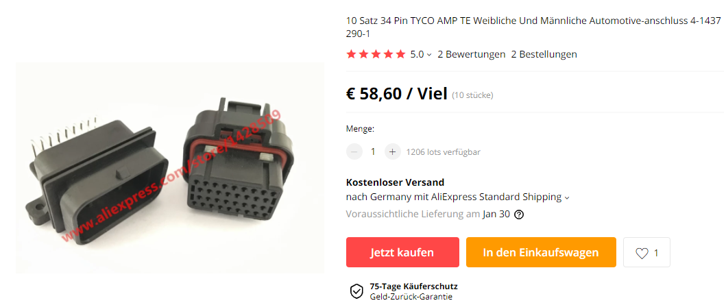 Ein Chinesennachbau vom Anschlußstecker komplett (Platinenseitig und Kabelbaumseitig sowie die notwendigen Pins dazu) kosten 10 Stück inkl. Versand 58,60 Euro: