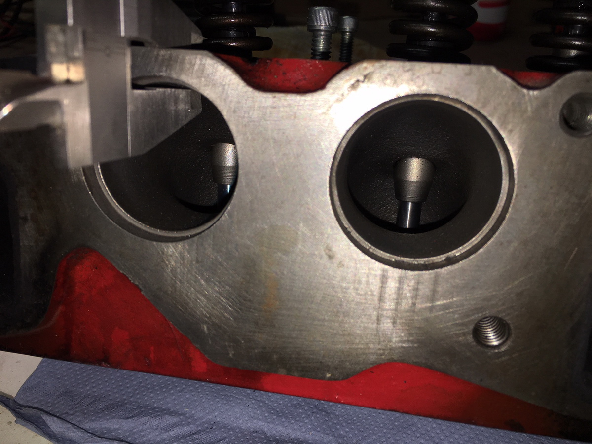 in den Kopf rein geht bevor die 90 Grad Kurve zum Ventil kommt. Der Einlass und Auslass ist an dem Kopf auf der selben Seite.